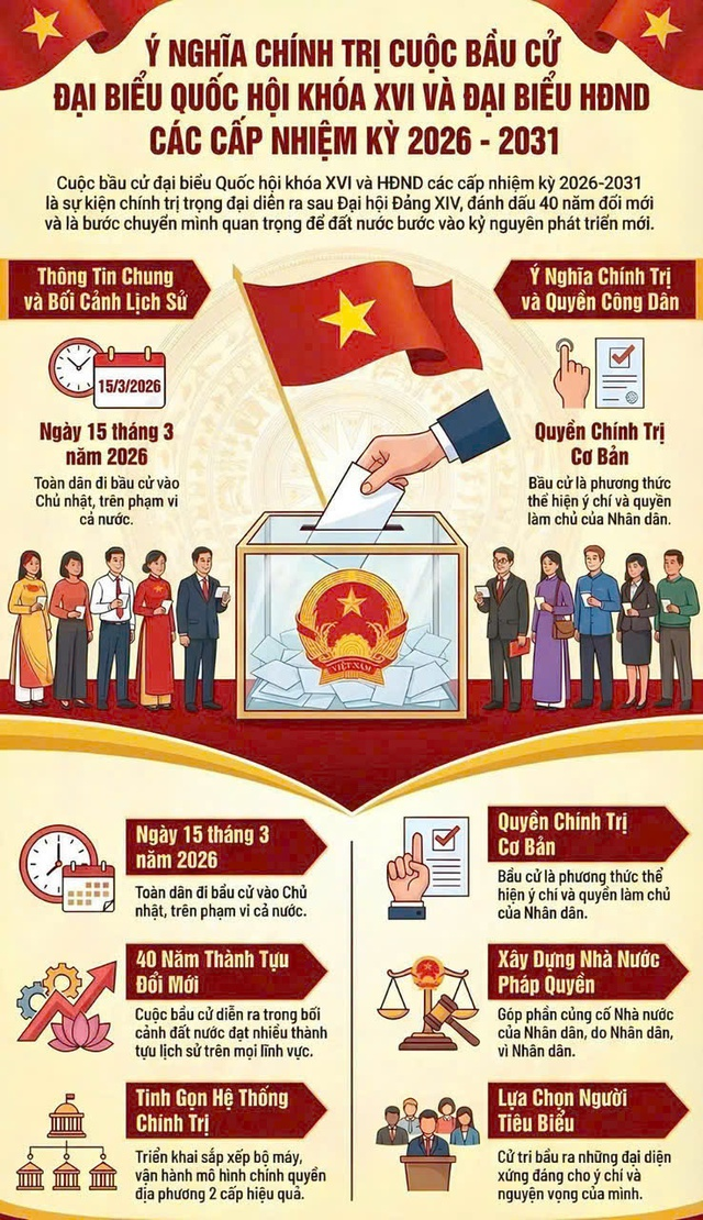 Ý nghĩa chính trị cuộc bầu cử ĐBQH khoá XVI và đại biểu HĐND các cấp, nhiệm kỳ 2026-2031