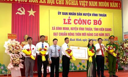Xã Bình Minh xã đầu tiên của huyện Vĩnh Thuận đạt Nông thôn mới nâng cao