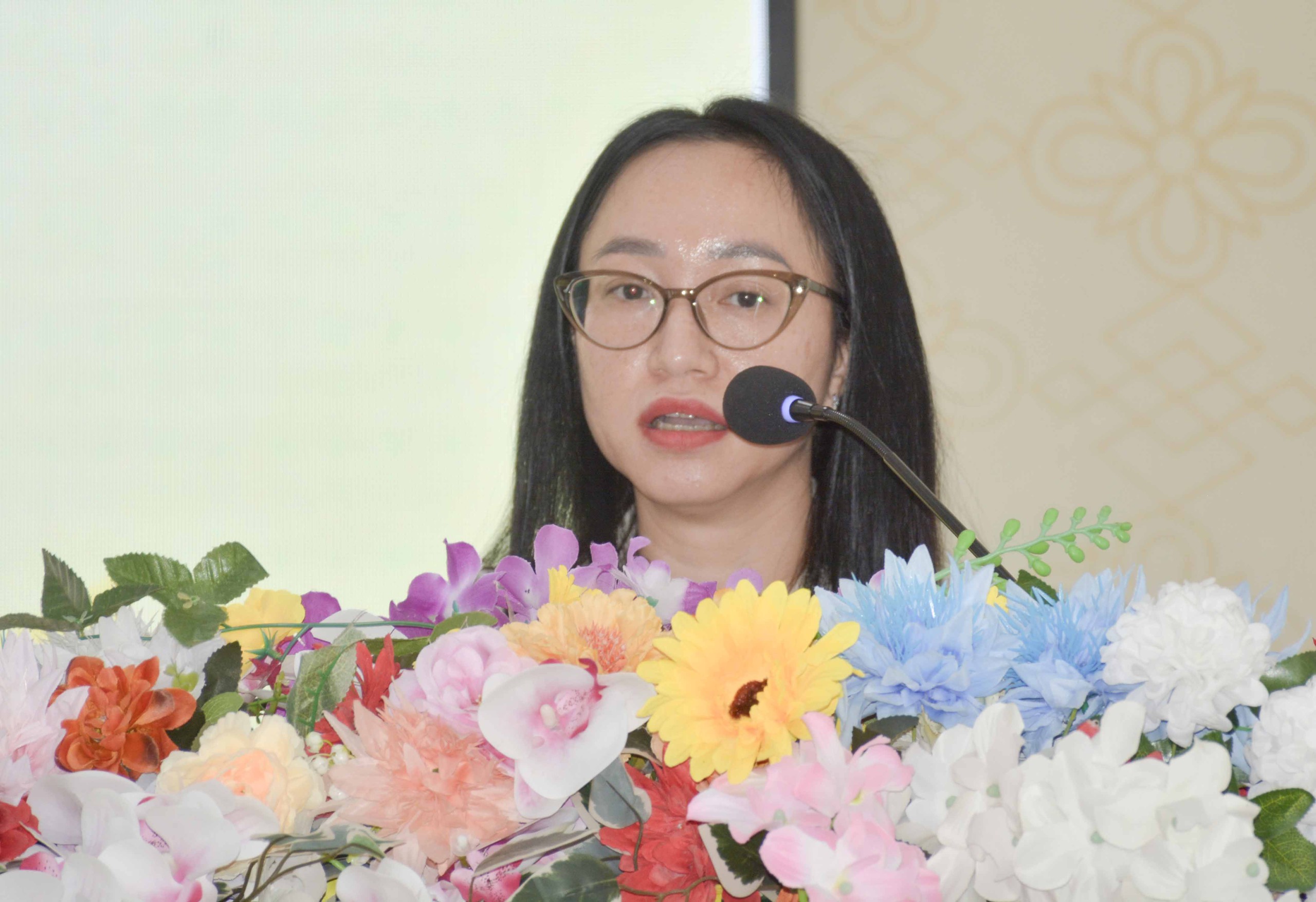Bà Nguyễn Thị Ngọc Bích - Trưởng phòng Công tác HĐND, Văn phòng ĐBQH và HĐND tỉnh An Giang trình bày chương trình hành động tại buổi tiếp xúc cử tri